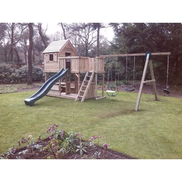 Bij de bestelling kan er gekozen worden om een aanbouw schommel en/of apenrek(monkeybar) toe te voegen.