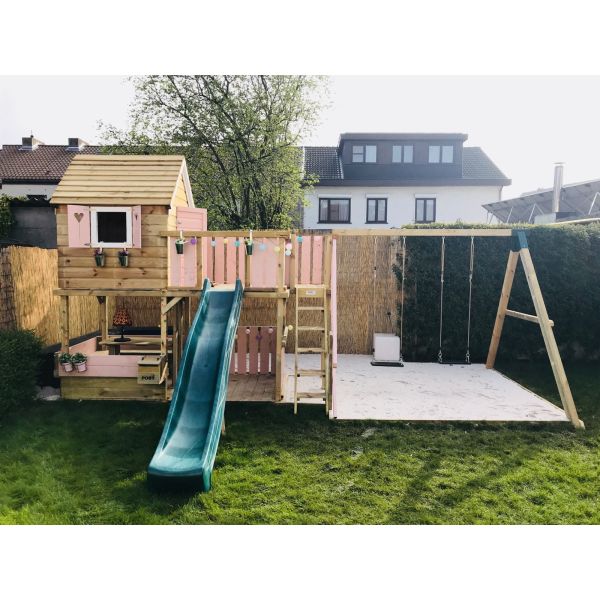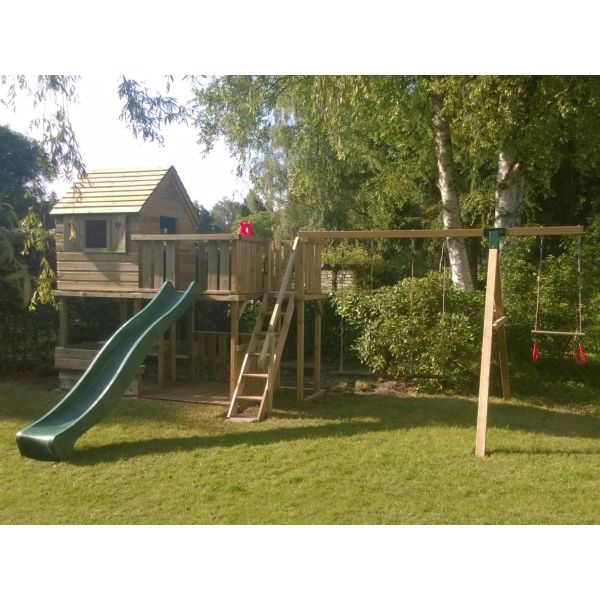 Je kunt zelf het speeltoestel uitbreiden met extra onderdelen (aanbouwschommel, klimwand etc.) of extra's (trapleuning, deur, luikjes etc.). Vergeet niet de schommelzitjes en enkele leuke accessoires mee te bestellen!