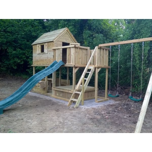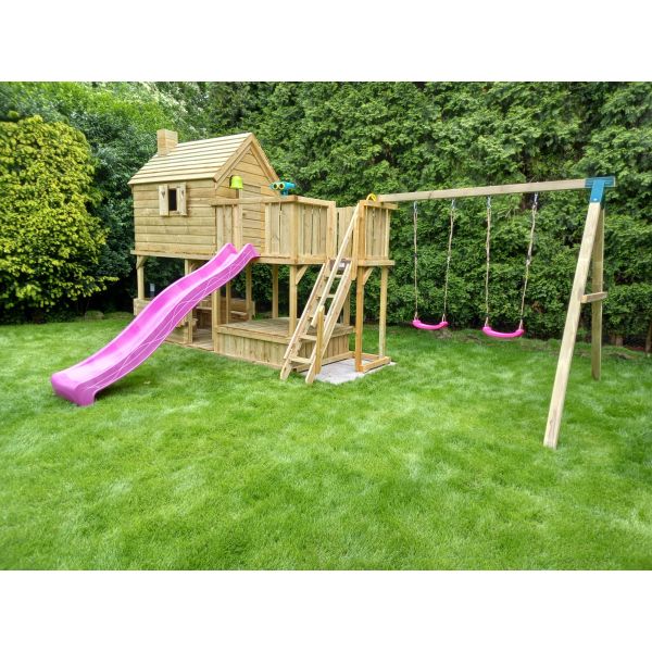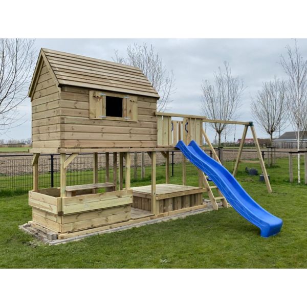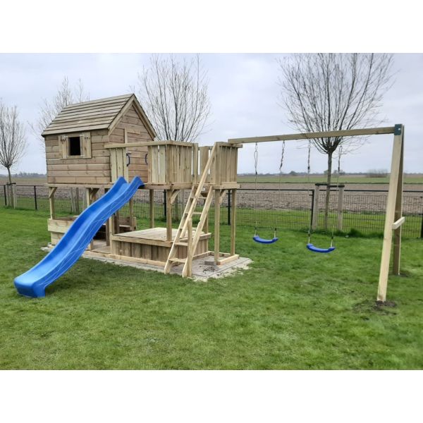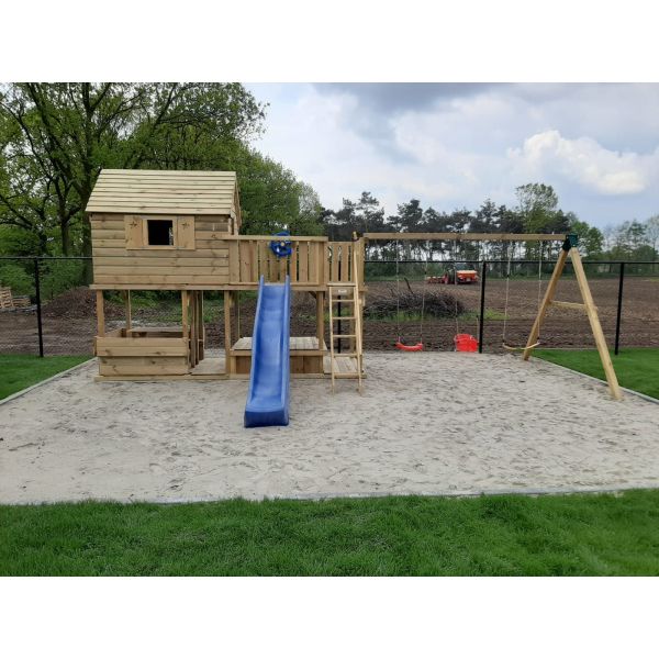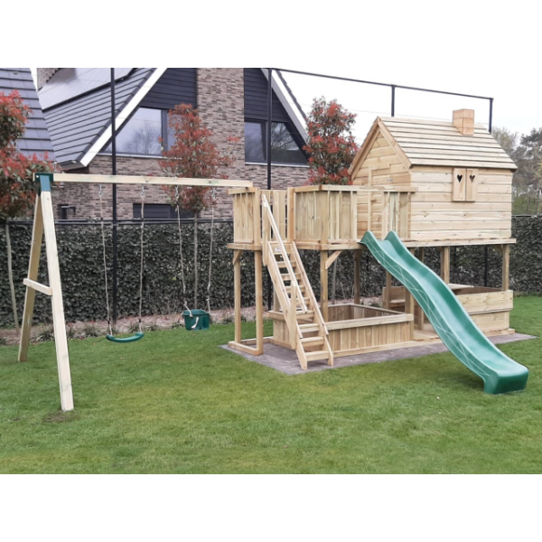 Je kunt zelf het speeltoestel uitbreiden met extra onderdelen (aanbouwschommel, klimwand etc.) of extra's (trapleuning, deur, luikjes, zandbakdeksel, etc.). Vergeet niet de schommelzitjes en enkele leuke accessoires mee te bestellen!