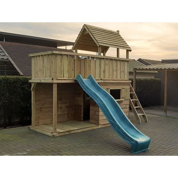 Je kunt zelf het speeltoestel uitbreiden met extra onderdelen (aanbouwschommel, klimwand etc.) of extra's (trapleuning, deur, luikjes etc.). Vergeet niet de schommelzitjes en enkele leuke accessoires mee te bestellen!