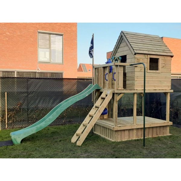 Je kunt zelf het speeltoestel eenvoudig aanpassen of uitbreiden met extra onderdelen (aanbouwschommel, klimwand etc.)