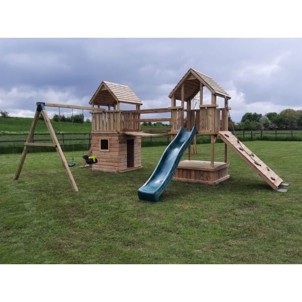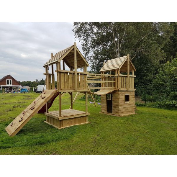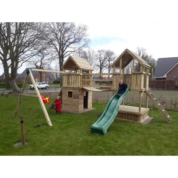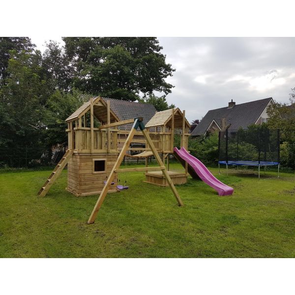 Je kunt dit zelf aanvullen met extra, alternatieve aanbouwdelen (klimnet/-wand, aanbouwschommel etc.) of extra's (deur, luikjes etc.).