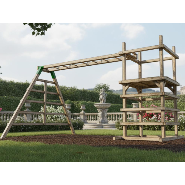 Ons apenrek met klimtoren is een losstaande blikvanger voor elke tuin. Robuuste materialen, veilige afwerking en onderhoudsarm design. Kinderen klimmen, hangen en ontdekken motorische vaardigheden. Eenvoudig te plaatsen, modulair uit te breiden en weerbestendig. Inclusief duidelijke montagehandleiding.