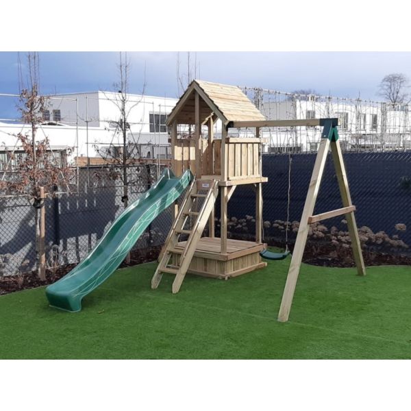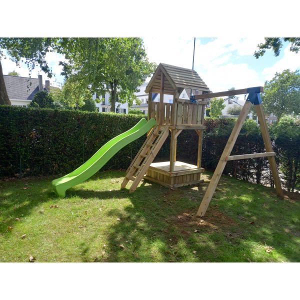 Je kunt zelf het speeltoestel uitbreiden met extra onderdelen (aanbouwschommel, klimwand etc.) of extra's (trapleuning, schoorsteen etc.). Vergeet niet de schommelzitjes en enkele leuke accessoires mee te bestellen!