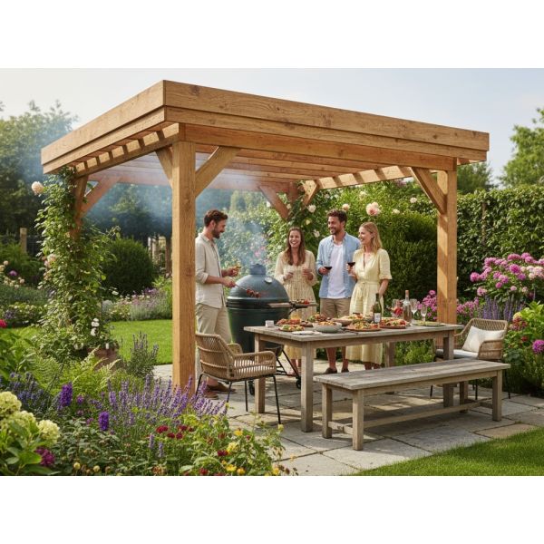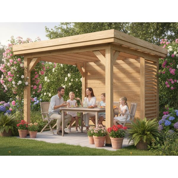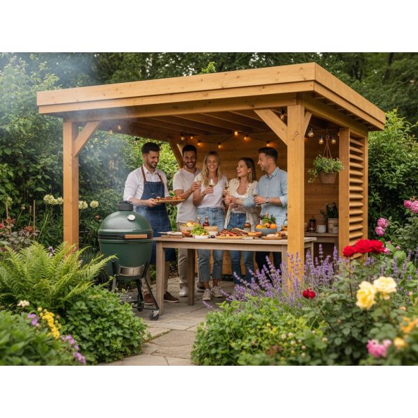Breng sfeer en functionaliteit in je tuin met het robuuste tuinhuis Lund. Dit model wordt volledig op maat geleverd, ook de benodigde inkepingen in de staanders zijn in de werkplaats reeds gemaakt.