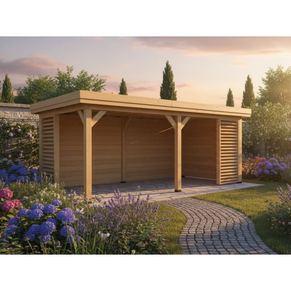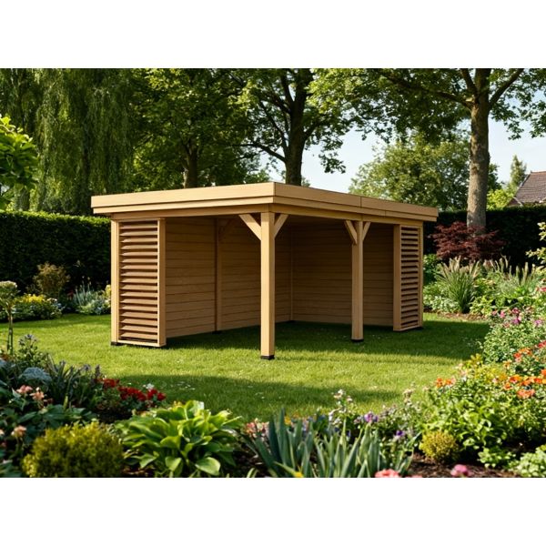 Het Tuinhuis SKOG (690x380 cm) is een robuust tuinhuis met massieve douglas staanders van 150x150mm.